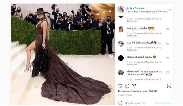 Кадрами с Met Gala актриса поделилась в своем Instagram. "#MetGala 2021", - просто написала Дженнифер. Для светского события Лопес выбрала необычное кожаное платье коричневого цвета с глубоким разрезом от бренда Ralph Lauren. Образ Джей Ло дополняла меховая накидка, массивные аксессуары и ковбойская шляпа. Обутая актриса была в серебристые босоножки на огромной шпильке. "Потрясающе