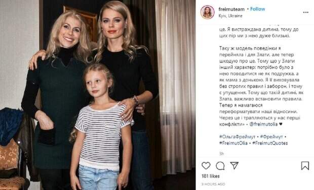 Украинская телеведущая Ольга Фреймут очень трепетно относится к своей матери и дочери, с которыми очень близка Как сообщает Politeka.net, на одной из фанатских страниц в "Инстаграм", посвященных звезде, опубликовали архивное семейное фото. Ольга Фреймут предстала на нем еще совсем молодой в компании матери и старшей дочери Златы Митчел, которой на вид лет около шести.