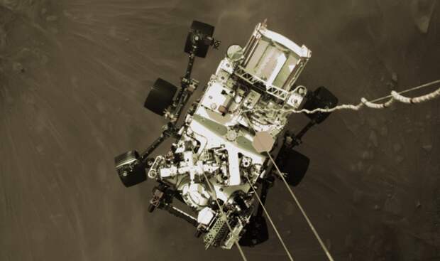 Марсоход Perseverance отправил на Землю первые снимки с Красной планеты, однако наиболее впечатляющим стало его собственное селфи, сделанное буквально за несколько мгновений до посадки на поверхность Марса.