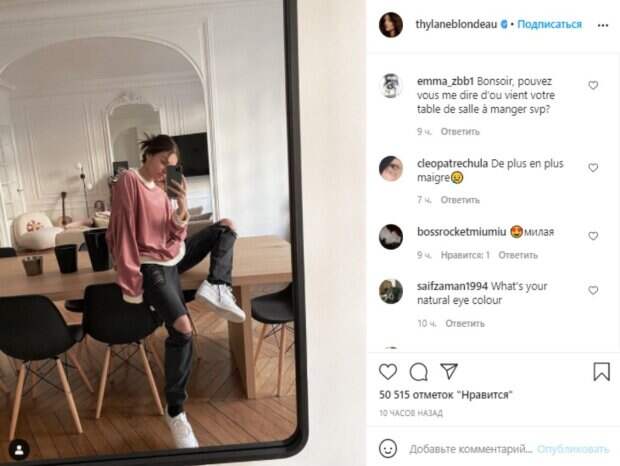 Девушка делала селфи на телефон, засняв свое отражение в зеркале напротив. Кроме того Блондо невзначай сфотографировала богатое убранство комнаты в белых тонах, с деревянным полом и большим обеденным столом. Напомним, модельная карьера Тилан началась, когда ей было всего 4 года. Тогда она, держась за руку одной из манекенщиц, вышла на подиум в наряде Жана Поля-Готье, а через два года снялась в детском Vogue Enfants. В 15 лет Тилан подписала контракт с международным модельным агентством IMG Models. Пользователи с восторгом кинулись комментировать увиденное: "Ждем новой коллекции!!!" "Красивая малышка" "Даже если Ван Гог и Леонардо да Винчи смогли бы собрать воедино произведения искусства, не создали бы того, кем вы являетесь♥" "Свежесть. ❤️" "этот наряд на высоте