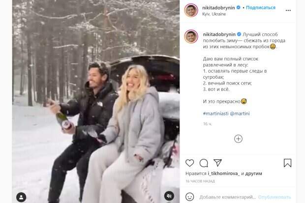"Холостяк" Никита Добрынин нарвался на критику из-за спиртного в руках беременной Даши Квитковой Как пишет Politeka.net, харизматичный "Холостяк" Никита Добрынин решил порадовать свою беременную жену Дашу Квиткову незабываемой загородной поездкой по снегу, но среди красивых и гармоничных кадров поездки, которые он показал в Instagram, появилась бутылка со спиртным, что вызвало много вопросов у поклонников.