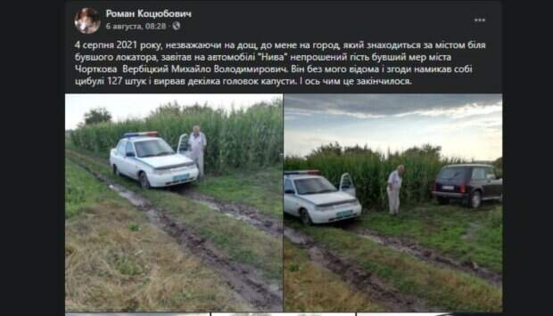 На Тернопольщине чиновника поймали на краже из чужого огорода Как передает Politeka.net, подробности сообщил пострадавший Роман Коцюбович на своей страничке в Facebook. Инцидент произошел в городе Чорткив. По словам мужчины, бывший мэр города попался на горячему во время кражи овощей с грядки.