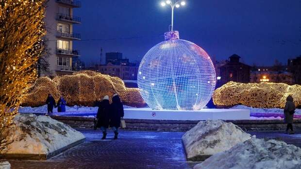Пятиметровый шар из более, чем 50 000 светодиодов заработал у часовни святой Екатерины в центре уральской столицы. Каждые десять секунд на арт-объекте появляется один из 23 праздничных узоров и надпись «Екатеринбургу 300 лет».