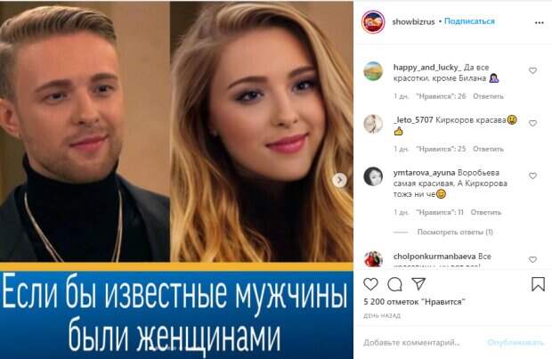 У поклонников знаменитостей появился безграничный простор для фантазии. Благодаря приложению, которым воспользовались фанаты и показали свои результаты в Инстаграм, можно легко понять, как бы выглядели популярные актеры, певцы и телеведущие, если бы были женщинами. Яркий макияж, длинные волосы, пухлые губы и нарисованные брови сделали некоторых артистов неузнаваемыми. Представляем вашему вниманию топ-фото знаменитостей, которые преобразились благодаря приложению. По мнению многих поклонников, артисты и в самом деле ничего не потеряли бы, если бы родились женщинами и использовали секреты макияжа. Некоторые же расстроились, что их любимые артисты могли выглядеть несколько иначе: «Да все красотки, кроме Билана