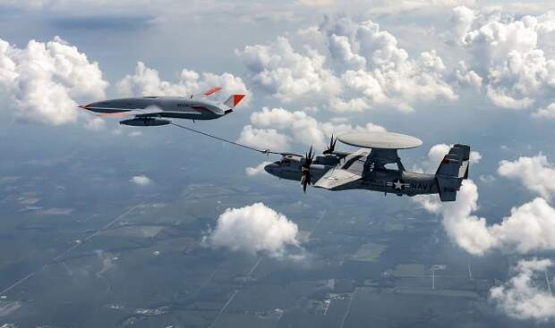 Прототип дрона-заправщика Boeing MQ-25 Stingray успешно заправил палубный самолет дальнего радиолокационного обнаружения (ДРЛО) E-2D Hawkeye ВМС США. Испытательный полет был выполнен лотами ВМС из испытательной эскадрильи VX-20 18 августа в аэропорту МидАмерика Сент-Луис.