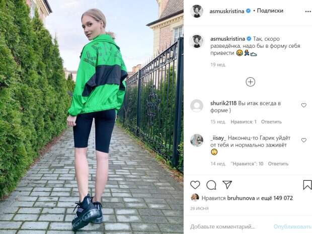 В одном из интервью Асмус признавалась, что на дом заработал Гарик. Куплен дом был в 2014 году, но долгое время там шел ремонт. Четырехэтажный дома находится в элитном закрытом поселке, недалеко от концертного зала «Барвиха Luxury Village», где проходят съемки Comedy Club. По оценкам издания, такой дом может стоить 90–100 млн рублей. Судя по фото, дом супругов – настоящий замок со множеством комнат. На некоторых фото Кристины видно, что вокруг дома большая територия. Известно, что сейчас в этом доме проживает Кристина с дочкой Настей. В ближайшее время супругам придется решить, как быть дальше. Адвокат надеется, что раздел имущества пройдет мирно. Стоит отметить, что несмотря на развод звезды делают вид, что сохранили дружеские отношения. Гарик не упускает возможности пошутить над Кристиной в Comedy Club. Не отстает и Асмус, которая иногда в шутку упоминает мужа у себя в Инстаграм. Напомним, что Асмус показала, как изменилась их с Харламовым дочка после развода, кадры. Как сообщала Politeka, Асмус после тяжелой болезни и развода с Харламовым выставили на улицу: "Очень холодно...". Также Politeka писала, что Асмус после "свадьбы" уморила нелепым видом в красной комбинации: "Обожаю. ..".