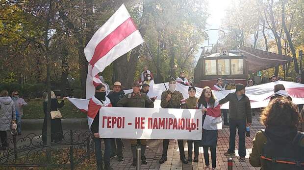 В проходящем в Киеве марше в честь очередной годовщины создания УПА помимо украинских националистов участвуют и их белорусские побратимы, которые развернули бело-красную символику гитлеровских коллаборационистов. Как передает корреспондент «ПолитНавигатора», группа змагаров насчитывает около 30 человек.