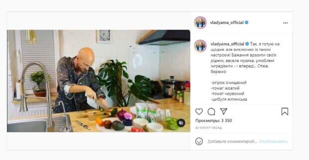 Хореограф не смог себя остановить, поэтому готовил в танце.  "Да, я готовлю не каждый день, но только с таким настроением! Желание поразить своих родных, веселая музыка, любимые ингредиенты - и вперед! .. Итак, берем: - огурец очищенный - томат желтый - томат красный - лук ялтинская - листья шпината - мякоть грейпфрута - салатная заправка с травами - орех пекан - сыр пармезан - авокадо Перемешиваем, танцуем, и - вуаля! Можно и не танцевать, но тогда за вкус я не отвечаю", - написал Влад.  Сообщалось, что знаменитый украинский танцор и судья шоу "Танці з зірками" Влад Яма побаловался словно ребенок. На новых фото Яма побаловался словно ребенок. Хореограф сел на качели и раскачался, при этом было видно, что он испытает удовольствие, ведь лицо Влада было в улыбке. "ГЛАВНОЕ - НЕ БОЯТЬСЯ ОСТАВАТЬСЯ НЕМНОГО РЕБЕНКОМ", - написал танцор. Напомним, Влад Яма из "Танців з зірками" растрогал чувственным фото с женой А еще Politeka писала, что Влад Яма из "Танців з зірками" удивил внешностью в спортзале Также Politeka сообщала, что жена Влада Ямы из "Танців з зірками" показала, как дурачатся ее муж с маленьким сыном