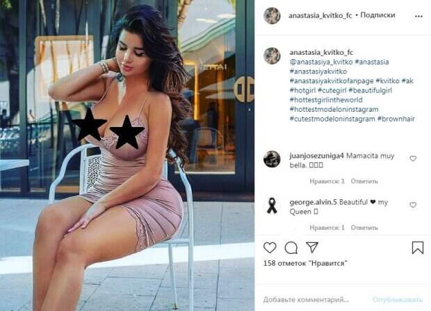 Соответствующее фото было опубликовано в одной из фан-групп знаменитости. Тонкие лямки едва ли держались на шелковой коже знаменитости. Кроме того, бретельки натянулись под тяжестью большого бюста. Тонкую талию подчеркнула шелковая ткань, которая немного собралась гармошкой. Звезда присела на стуле выставив на ней свою вторую гордость - большие ягодицы. Распущенные волнистые волосы, различные украшения, пышные ресницы и пухлые губы - все это выглядело таким нежным и отлично завершало образ. Пост собрал более 100 лайков и много комментариев, в которых выражали свое восхищение звезде. "Будоражащая девушка", - написал один из поклонников. Ранее мы писали, что Анастасия Квитко надела джинсовый наряд, прекрасно выделявший все ее достоинства. В частности, ткань подчеркнула выразительную пятую точку. Из смелого декольте выставилась большая грудь красотки, но ее это совершенно не смущало. Тонкие бретельки наряда, казалось, сейчас оборвутся от тяжести груди. Напомним, Анастасия Квитко позировала в топе и трусиках. Красотка дополнила образ стильными очками, которые напоминали лыжную маску. Анастасия села боком и выставила пятую точку, чтобы фанаты смогли насладится ее идеальностью. Модель сидела на стуле и совсем не смущалась своего лука. Напомним, русская Кардашьян пленила своей роскошью огромных размеров в прозрачном платье Также Politeka сообщала, что русская Кардашьян заворожила пышными формами в соскальзывающем купальнике А еще Politeka писала, что русская Кардашьян укоротила и так миниатюрный топ, показав выпирающие "бомбочки"