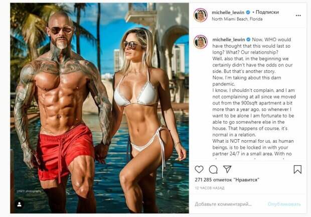 Известная фитнес модель Мишель Левин показала себя и рассказала об отношениях На фото Мишель позирует в белом купальнике на веревочках, а образ дополнила очками. Рядом можно увидеть мускулистого мужчину, как можно понять, это возлюбленный Левин. Пара держалась за руки и демонстрировали не только идеальное тело, но и загар.