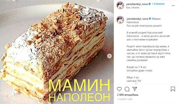 Судья "Мастер Шеф" Владимир Ярославский поделился маминым рецептом торта «Наполеон» Как пишет Рoliteka.net у себя в Instagram шеф-повар раскрыл все тонкости приготовления вкусного десерта. "В каждой семье был собственный Наполеон - у меня довольно влажный но с плотными лепешками. Рецепт мне перешел от мамы, я конечно его немного переделал со временем, а вот маме достался от ее тети, так что можно считать это уже семейная реликвия», - отметил ресторатор.