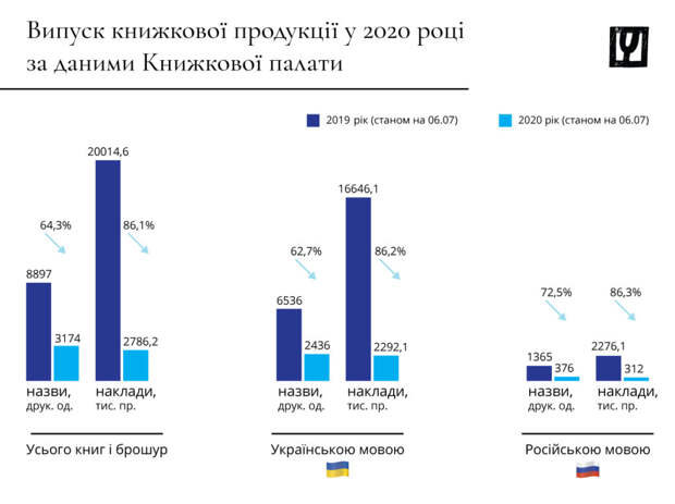 «По итогам 2020 прекратили свою деятельность 343 издательства и 48 магазинов. Это достаточно кричащая цифра. Кроме того, по данным Ассоциации издателей и книгораспространителей, из-за кризиса 2020 отрасль снизила объемы производства книжной продукции по сравнению с 2019-м годом по названиям на 23,3% и по суммарному тиражу — на 34,3%», — пишет он на «Фейсбуке». При этом Креминь апеллирует к своей 26 статье Закона Украины «Об обеспечении функционирования украинского языка как государственного». По его мнению, если четко ее придерживаться, то ситуация с книгами улучшится. Как одно зависит от другого — загадка. Чтобы успешно печатать украинских авторов и делать качественные переводы нужны большие деньги. И мова здесь не поможет. Особо патриотично настроенные граждане мечтают окончательно выдворить российскую продукцию из книжного рынка. В комментариях у Креминя призывают запретить напечатанное в РФ, несмотря на низкую себестоимость. А так как свято место пусто не бывает, прилавки автоматически заполнятся украинскими экземплярами и зарубежной литературой в оригинале (разумеется, на любом языке, кроме русского). Правда, это не сработает. Прошлогодняя ситуация с «Книгарней Є» показала, что если торговая сеть не хочет обанкротиться, ей придется расширять ассортимент российскими книгами. Украинский сегмент, увы, сокращается. Примечательно, что в Советском Союзе, который целенаправленно уничтожал нашу нацию голодом, войнами, массовыми расстрелами и насильной русификацией, украиноязычные книги издавали десятками миллионов. Пик пришелся на 1974 год — 105 млн экземпляров. А теперь посмотрите, какие фантастические тиражи были в независимой Украине за 2019-2020 гг. Особенно после пандемии. Источник: chytomo.com Популяризация языка — дело сложное, долгое и дорогое. Чтобы выпускать книги , нужно сильно заморочиться. Гораздо проще заставить медийных персонажей говорить на державній и звать на каждое ток-шоу Ларису Ницой. Понравился материал? Поставьте ему 5 звезд. Это важно для автора.