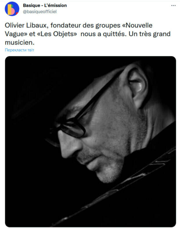С юных лет он увлекался музыкой и участвовал в нескольких небольших проектах. В 1989-м году он основал группу Les Objets, с которой выпустил два альбома. Однако, настоящая известность пришла к музыканту после появления группы Nouvelle Vague, которую он создал вместе с Марком Колленом в 2003-м году. Дебютный альбом музыкантов включал каверы на песни таких легенд, как Depeche Mode, The Clash, Joy Division, Tuxedomoon и других. Группа была известна тем, что постоянно меняла своих вокалисток. Многие из них впоследствии построили успешные карьеры соло. Сам Либо также выпускал сольные песни. Музыкальный мир Франции оказался потрясен смертью Оливье. «Ушел из жизни Оливье Либо, французский музыкант и продюсер, получивший известность за свою работу в Nouvelle Vague. Покойся с миром», «Ушел из жизни основатель групп "Nouvelle Vague" и "Les Objets" Оливье Либо. Замечательный музыкант», «Грустно слышать о смерти Оливье Либо», «Безмерная печаль после новостей о смерти Оливье Либо, основателя Objects и Nouvelle Vague. Друг на протяжении 30 лет», - пишут в соцсетях. Напомним, легендарный музыкант отошел в мир иной, раскрыты трагические подробности. Как сообщала Politeka, оборвалась жизнь известного музыканта, его слышали многие. Также Politeka писала, что жизнь известной певицы внезапно оборвалась.