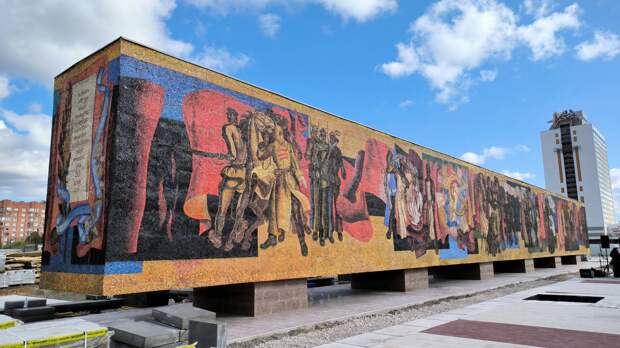 Несмотря на то, что мозаичное панно полностью отреставрировано, фактически монумент находиться на строительной площадке — ведутся работы по благоустройству территории. Во второй половине сентября их планируют завершить и устроить по этому случаю торжественное мероприятие. Открытие стелы-панно «Радость труда» для жителей города стало значимым и долгожданным событием. Особым гостем мероприятия стала искусствовед Татьяна Ермакова — вдова Юрия Королева, по картинам которого была выложена смальтовая мозаика на монументе. В настоящее время Ермакова работает заведующим отделом живописи первой половины XX века Третьяковской галереи в Москве. «Находясь два дня в Тольятти, я поняла, что реставрация могла состояться именно в вашем городе. Связано это с тем, что он обладает какой-то удивительной энергетикой и любовью к своей истории. И вообще к советскому искусству, которое вокруг нас, но не всегда мы его воспринимаем как актуальное искусство. В вашем городе это очень актуальное искусство», — заявила Ермакова. На открытии также выступил глава администрации Тольятти Николай Ренц: «Подобные объекты, которые созданы гениальными людьми, они, на мой взгляд, привязывают к нашей Родине. Они нас якорят здесь. Эти символы, которые за моей спиной. Обратите внимание на Красное Знамя. Оно по всей поверхности (мозаичного панно «Радость труда“ — прим. ИА Красная Весна) и на фоне Красного Знамени все события. И эти события нельзя вычеркнуть из нашей истории. Именно благодаря этим событиям мы с вами здесь сейчас стоим». «До прихода на должность главы города я даже не знал, где находится этот памятник. Мне за это стыдно. И я вот таким образом (помощью в реставрации памятника — прим.) попытался искупить свой стыд, свою вину. Я горжусь, что я возглавляю город в это время. Мне это чрезвычайно греет душу», — завершил свою речь Николай Ренц. Разоткровенничался по случаю открытия памятника и ректор ТГУ Михаил Криштал, чей университет занимался реставрацией памятника: «У меня схожее чувство. Я вспоминаю, что так же, как Николай Альфредович, к стыду своему, не знал, что у нас есть такое. Все время вспоминаю мультфильм „Большой Ух“. Его персонаж все время слушал, что творится во вселенной, но не замечал, что происходит по соседству. Потом ему показали, что рядом есть „собственная лесная звезда“. Эта историю похожа на мою». «Я посмотрел фотографии газеты «За коммунизм» и другие. Там много информации о том, как это все создавалось и делалось. Я узнал не так давно, что 1982 году в энциклопедии, посвященной искусству в Советском Союзе, было написано, что это первый в СССР памятник, сделанный исключительно средствами монументальной живописи. Как вы думаете, после этого появился второй? Я думаю, что нет», — заключил ректор ТГУ, изучая исторические находки сообщества ВКонтакте «ЗА восстановление стелы-панно «Радость труда». Присутствовавший на открытии епископ Тольяттинский и Жигулёвский Нестор отметил: «Это все тоже наше наследие и наша преемственность. Поэтому невозможно взять и отрезать что-то из нашей истории и начать всё с нуля». Читайте также: Епископ Нестор заявил, что советский период невозможно отрезать от истории Напомним, на мозаике запечатлены события из истории СССР, начиная от Великой Октябрьской социалистической революции и заканчивая строительство
