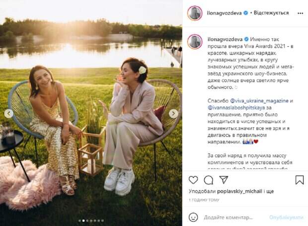 На новых снимках видно, что Илона пришла на вечеринку в оригинальном образе, и едва не затмила других звезд. Перед камерами она блистала в длинном платье до пят на тонких бретельках, которое полностью декорировано золотистыми пайетками. Волосы красотки распущены и аккуратно уложены, а на ее лице легкий естественный макияж. Как видно, хореограф с радостью фотографировалась с другими звездами мероприятия. В подписи к фотографиям Гвоздева написала: "Именно так прошла вчера Viva Awards 2021 – в красоте, шикарных нарядах, лучезарных улыбках, в кругу знакомых успешных людей и мега-звёзд украинского шоу-бизнеса, даже солнце вчера светило ярче обычного. За свой наряд я получила массу комплиментов и чувствовала себя словно рыбкой золотой, спасибо всем за комплименты и конечно же за это шикарное платье". Фанаты звезды не остались равнодушны и принялись осыпать комплиментами танцовщицу. Напомним, Победительница "Танців з зірками" Гвоздева показала себя в купальнике: "Простые смертные могут любоваться". Как сообщала Politeka, Победительница "Танців з зірками" Гвоздева разозлила украинцев фото на курорте: "Умных мыслей нет...". Также Politeka писала, Победительница "Танців з зірками" Гвоздева показала свою красотку-маму на всю страну: "Вот появятся свои дети…".