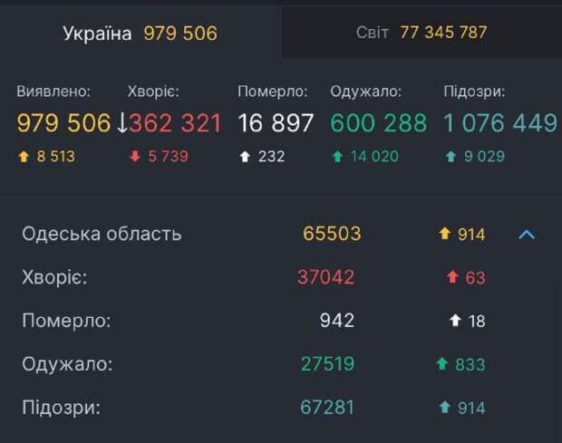 Одесчина снова очутилась в тройке лидеров по числу заболевших китайским вирусом за сутки Как сообщили в СНБО, на утро 22 декабря в Одесской области выявлено еще 914 новых случаев заболевания. Всего с начала пандемии зарегистрировано 66 тысяч 503 случая заражения на COVID-19. Таким образом, регион находится на 3-м месте по количеству заболевших за сутки.