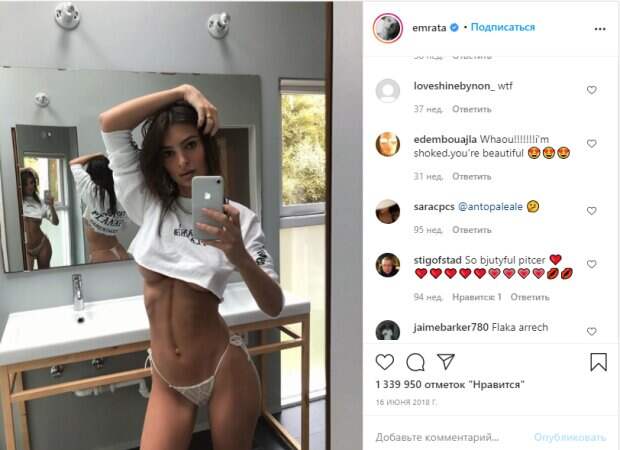Известная модель, начинающая актриса Эмили Ратаковски поделилась пикантным домашним кадром Девушка любит естественную красоту, поэтому на ее странице в социальной сети Инстаграм все больше кадров, которые демонстрируют ее достоинства в естественном и природном виде. Без макияжа и укладок Эмили появляется как на публике, так и дома.