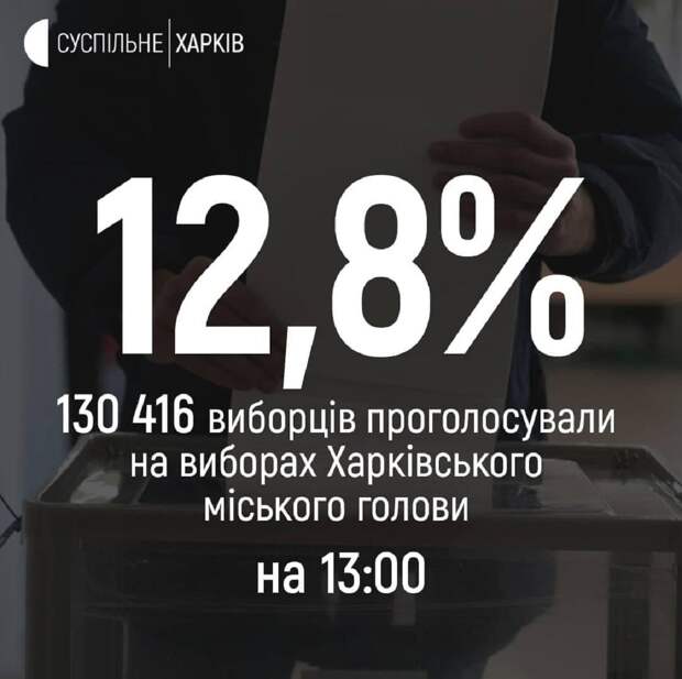 По состоянию на 13:00 явна на выборах мэра Харькова составляет 12%. Об этом свидетельствуют данные территориальной избирательной комиссии. Ранее Комитет избирателей Украины заявил о низкой явке на выборах в Харькове. Кандидат в мэры Игорь Терехов объясняет это заявлением депутата от "Слуга народа" Михаила Радуцкого, что для голосования нужно будет иметь Covid-сертификат.