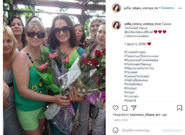 София Ротару часто радует поклонников своими яркими снимками, на очередном кадре звезда с огромным букетом цветов Как передает Politeka.net, на фан-аккаунте певицы в Instagram появился снимок, на котором певица стоит в окружении поклонниц с огромным букетом цветов. Кадр сделан в августе 2009 года. Звезда советской и украинской эстрады в окружении фанатов с огромной охапкой цветов, с сияющей улыбкой и темных очках от солнца.