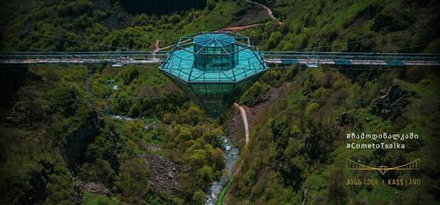 В Грузии появился 240-метровый мост над пропастью 15 июня в Грузии над каньоном Дашбаши открылся уникальный стеклянный 240-метровый мост над пропастью. По стеклянному мосту можно перейти с одного берега каньона на другой, а между делом посетить ресторан в форме огромного бриллианта, который расположился в середине моста.