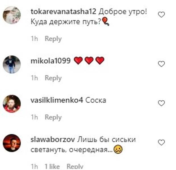 Во время поездки исполнительница позировала на заднем сидении, показав свои роскошные прелести крупным планом. Благодаря большому люку салон авто оказался хорошо освещен, и поклонники смогли во всех деталях рассмотреть, что находится внутри декольте Тины Кароль. Судя по кадрам, артистка не надела под платье бюстгальтер. Поклонники не остались равнодушны к таким кадрам и оставили свои отзывы: "Доброе утро! Пусть зимнее настроение вас не покидает