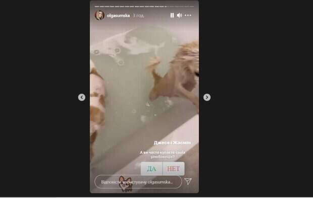 Народная артистка Украины Ольга Сумская поделилась забавным видео со своими собаками Как пишет Politeka.net, 55-летняя актриса театра и кино Ольга Сумская часто делится с поклонниками подробностями личной жизни и показывает ежедневные хлопоты в своем Instagram. На этот раз Сумская записала stories из ванны и показала, как она купает своих собак – Джесю и Жасмин.