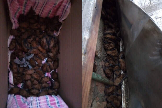 В эти выходные во время проведения ремонта на одном из балконов многоэтажки в Днепре обнаружили целую колонию летучих мышей. Об этом сообщает Depo.Днепр. Известно, что рукокрылые выбрали себе как место зимовки обшивку балкона. Спасатели изъяли более 719 летучих мышей. Всех их с помощью волонтеров доставили в Харьковской центр спасения рукокрылых.