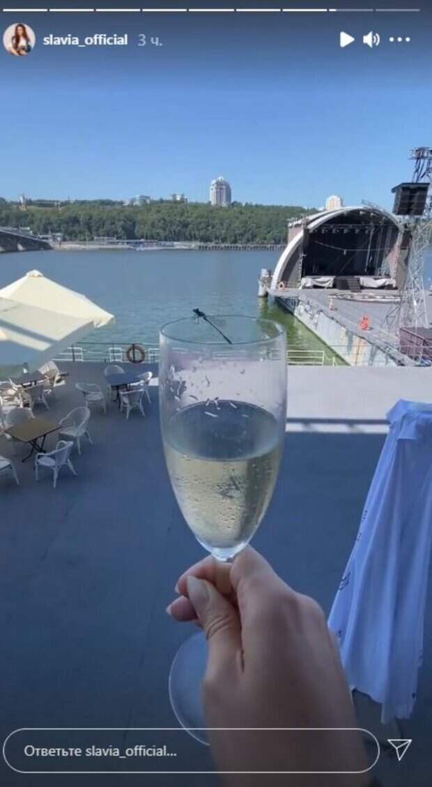 В частности, как начинающая артистка SLAVIA выпустила несколько треков и клип. Сейчас Ярослава активно развивает и свой канал в Инстаграм. На нее уже подписаны 23 тысячи человек, с которыми она делится новостями о своих успехах. В новых сторис Slavia показала, как наслаждается жизнью на улице с бокалом шампанским. Звезда показала себя в топе с вырезом посередине, засветив майку с вырезом. Красивый макияж отлично дополнил образ. А вот ветер немного портил прическу. "Хорошего воскресенья, друзья! Люблю места с видом на воду. Чувства будто на круизном лайнере. К слову, давно мечтала", - написала артистка. Отметим, в одном из интервью SLAVIA рассказала, что все время чувствовала себя тени мужа. К тому же, ей последнее время не хватало внимания супруга. Сейчас она твердо решила развиваться, как самостоятельная творческая единица. Напомним, певица Slavia после развода с Дзидзьо осуществила свою мечту, хвастнув достижением А еще Politeka писала, что экс-жена Дзидзьо Slavia открыла бутылку вина прямо в машине Также Politeka сообщала, что Дзидзьо после развода со Slavia разоткровенничался с Осадчей о новой любви