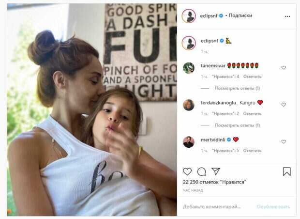 Фото вышло очень нежным, если не сказать - интимным. Об этом пишет Politeka.net со ссылкой на страничку знаменитости. "Кенгуру", - лаконично подписала смайликом фото Нур. Фанаты поставили более 20 тысяч лайков и написали комментарии: "Посмотрите на кенгуру", "Будьте терпеливы, мой свет, ваше время не так", "Куда ты пошла. Такая красивая Нур", "Ты такая красивая, я очень тебя люблю", "Это отличное фото", "Мои дорогие красивые, я очень люблю тебя, доброе утро", "Икона", "Пусть мой Господь сделает ваше счастье и ваши отношения вечными", "Каково это быть мамой", "Королева и принцесса". Мы сообщали, что 39-летняя немецко-турецкая актриса из сериала "Великолепный век" Нур Феттахоглу впечатлила королевским образом. Так, на черно-белом снимке Нур кружилась перед камерой, стоя возле кровати - девушка "застыла" в удачный момент, когда, казалось, что вот-вот оторвется от пола и взлетит. Напомним, звезда "Великолепного века" засветила лишнее в роскошном платье А еще Politeka сообщала, что Мерьем Узерли и другие звезды "Великолепного века" показали, какими растут их дети Также Politeka сообщала, что звезда «Великолепного века» распахнула одежду и дерзко уселась перед камерой