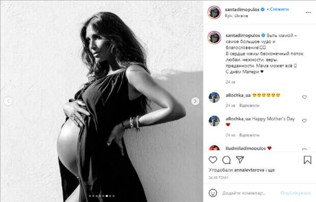 На первом архивном кадре Санта еще совсем юная, она подошла к маме и схватила ее сзади, при этом весело хохоча. На еще одном черно-белом фото певица позирует с огромным беременным животом, который еще и оголила, задрав темное платье. Остальные несколько кадров – это фото детей и с детьми. Сына Димопулос родила в первом браке с шоуменом Андреем Джеджулой, а дочку – от второго мужа Игоря Кучеренко. В подписи к фотографиям Санта написала: "Быть мамой – самое большое чудо и благословение! В сердце мамы бесконечный поток любви, нежности, веры, преданности. Мама может всё. С днём Матери!". Пользователи тут же принялись активно обсуждать снимки, которые показала певица, засыпая ее и детей комплиментами в комментариях. Напомним, Димопулос из "Танців з зірками" восхитила результатами тренировок в спортзале: "Идеально". Как сообщала Politeka, Расслабленная Димопулос из «Танців з зірками» развалилась на диване, впечатлив признанием: "Мне нравится…". Также Politeka писала, Фигуристая Димопулос из "Танців з зірками" в бикини свела с ума фантастическим пейзажем: "Амазонка".