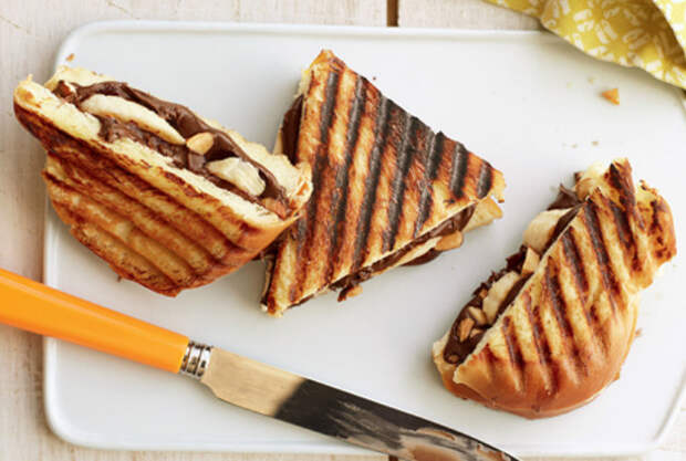 Ингредиенты Банан спелый большой — 1 штука Хлеб для сэндвичей — 4 куска Миндаль жареный — 2 столовых ложки Паста нутелла орехово — шоколадная — 60 грамм Способ приготовления Банан очистите и нарежьте кружочками. Миндаль порубите. Намажьте шоколадной пастой все 4 ломтика хлеба. Посыпьте миндалем, прижмите ложкой.