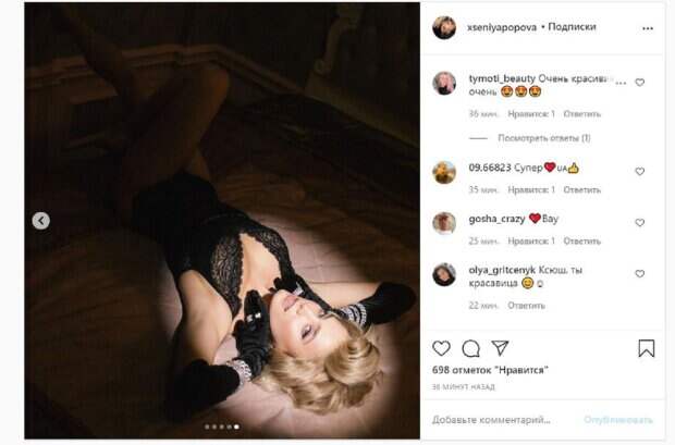 Известная украинская певица Ксения Попова, звезда "Х-фактора" и солистка группы "ВИА Гра", показала себя в новом соблазнительном образе Красотка лежала на кровати в черном кружевном белье, которое оказалось частично прозрачным. Образ Попова дополнила рукавичками и украшениями. Девушка не стеснялась показать на нескольких фото, как умеет соблазнять.