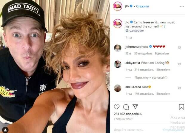 Известная актриса Дженнифер Лопес показалась в растрепанном виде в окружении звездного красавчика Об этом сообщает Politeka со ссылкой на Instagram знаменитости. «Можешь почувствовать ее…новую музыку прямо за углом?» - говорится в сообщении. Уточним, что на фотографии Лопес позирует в растрепанном виде, а рядом с ней стоит американский композитор и певец Раян Теддер.