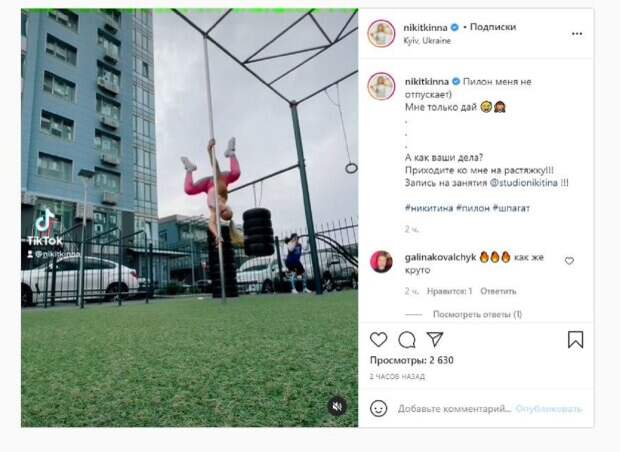 Актриса Екатерина Никитина, одна из резиденток "Женского квартала", показала свои умения на улице Как пишет Politeka.net, Екатерина Никитина уже несколько лет является одной из резиденток "Женского квартала". Красотка обожает спорт, учит растяжке, а также танцует у пилона. Не забывает Никитина и об Инстаграм, где делится с фанатами всем интересным.