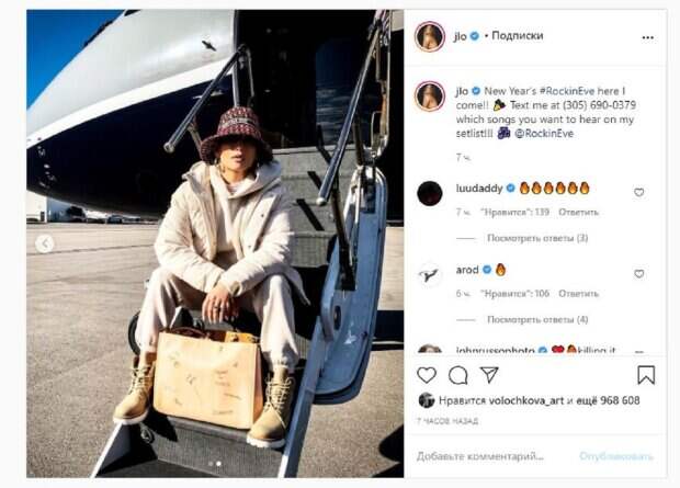 Известная певица Дженнифер Лопес показала себя и рассказала о вечеринке На фото Дженнифер показала себя в толстовке и шляпе, которую натянула аж на глаза. Звезда сидела в самолете и куда-то смотрела. Образ Лопес дополнила ярким макияжем, что сделало снимок более ярким. На втором кадре красотка уже сидела на трапе, а в руках держала сумку.