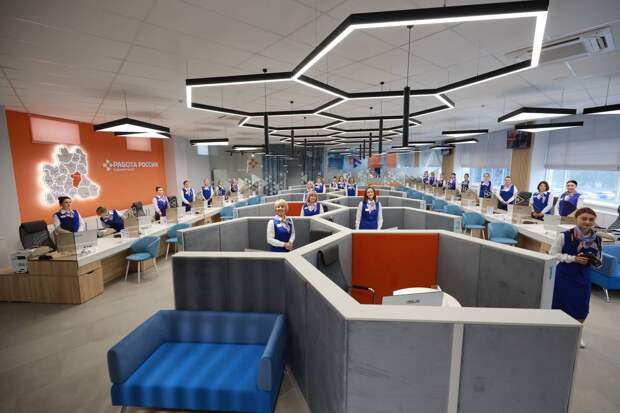 И всё это сделано в короткий срок». В модернизтированном учреждении в настоящее время трудятся более 90 специалистов. Здесь оборудованы 17 окон приёма, для переговоров работодателей с потенциальными работниками созданы индивидуальные кабинки. Также имеются отдельный кабинет психолога и конференц-зал.