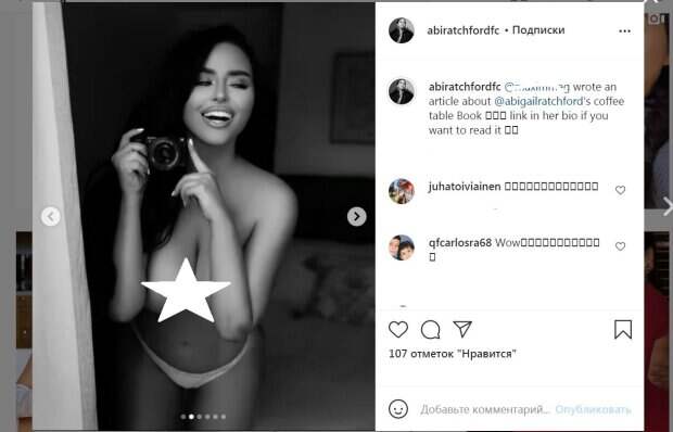 Рэтчфорд сжала бюст руками. Большую грудь едва ли удалось скрыть - пышные прелести так и притягивали взгляд. Красотка надела крохотные трусики, подпрыгнувшие выше бедер. Плоский животик и тонкая талия с пышными бедрами - все это восхищало не менее, чем другие формы звезды. Модель распустила волосы, которые аккуратной волной легли набок. Она улыбалась и вела себя в кадре непринужденно. При этом в руках Эби держала фотоаппарат. В таком виде знаменитость позировала у окна. За несколько часов пост собрал всего более 100 лайков, ведь группа только набирает популярность. "Фантастическая", - написал один из поклонников. Ранее мы писали, что Эби Рэтчфорд родилась в многодетной семье и была пятым ребенком из семи. Красотка равнялась на своего старшего брата, который снимался в рекламе Calvin Klein. В 20 лет модель приняла участие в конкурсе Мисс Пенсильвания, но дошла только до полуфинала. Эби сменила много профессий, параллельно выкладывая свои обжигающие фото в соцсети. В результате она привлекла внимание, и ее карьера стала расти. Сейчас на ее страницу в Инстаграм подписаны 9,1 миллиона пользователей сети. Напомним, Эби Рэтчфорд приковала к себе взгляды, "выронив" бюст из декольте А еще Politeka писала, что Эби Рэтчфорд игриво покрутилась перед камерой, хвастаясь своим соблазном в микро-бикини Также Politeka сообщала, что Эби Рэтчфорд посветила "драгоценностями" в тесном купальнике и раззадорила фантазию
