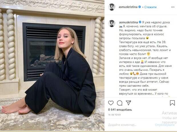 Российская актриса Кристина Асмус откровенно поделилась с фанатами своим самочувствием и рассказала, к чему пропал интерес Об этом она рассказала в Instagram, передает Politeka. «Я уже неделю дома