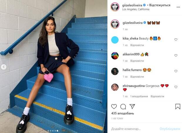 Популярная бразильская модель Жизель Оливейра, которая является звездой Victoria’s Secret, примеряла роль школьницы-бунтарки Как пишет Politeka.net, у себя в Инстаграм девушка опубликовала серию соблазнительных фото. Модель была одета в короткую плиссированную юбку, блестящий топ и красивый строгий пиджак.
