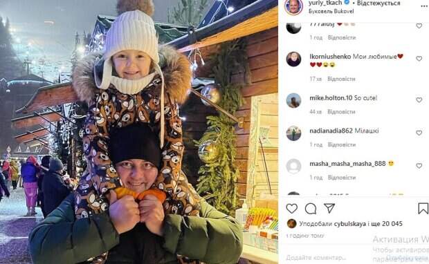 На снимке можно заметить самого Юрия с дочерью Лизой, которая сидит на шее у отца. Поклонники буквально «засыпали» пару комплиментами, о чем говорит происходящее в комментариях. «Вы бомбезные! Лиза – это вообще полный кайф», «классные какие. С Рождеством вас!», «атмосфера что надо», «такие классные», «сразу видно – папина доця», «боже, это так мило», «милахи», - пишут они. До этого мы рассказывали, что актер из студии «Квартал 95» Юрий Ткач похвастался своей подросшей дочерью в ее день рождения На фото Ткач и его жена трогательно приобнимают маленькую Лизу. Девочка позирует с милой улыбкой на лице в черном платье с оригинальным украшением. При этом на лице шестилетней красотки можно заметить легкий макияж и блестки. Напомним, распаренный Ткач из "Квартал 95" в одном халате поразил внешним видом: "Аладдин уже не тот". Как сообщала Politeka, счастливого Юрия Ткача из "Квартал 95" застали под роддомом, фото семейства. Также Politeka писала, что Ткач из "Квартал 95" озадачил странной выходкой на съемочной площадке: "Уже стаканюру лупонул".