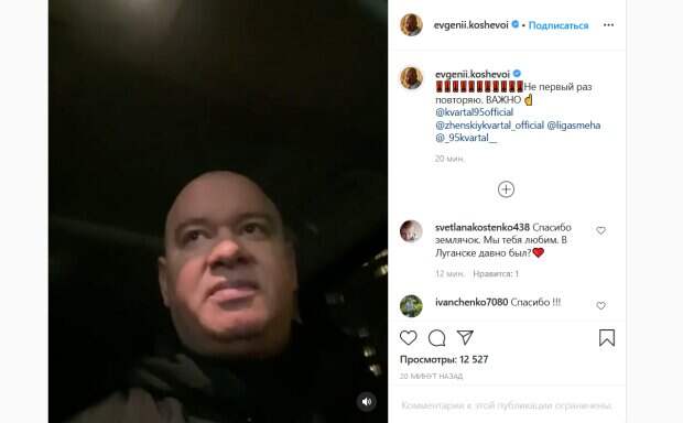«Смотрите: никаких розыгрышей ни Студия «Квартал 95», ни я лично не проводим. Не ведитесь на этот развод! С разводчиками боремся, пытаемся их банить. Не ведитесь на эти разводы, не тратьте тем более последние деньги! Официальные розыгрыши проводятся только с официальной страницы Студии «Квартал 95», с моей страницы и с официальных страниц всех актеров. Не ведитесь на левую шнягу! Я надеюсь, я до вас достучался. И перестаньте выплескивать свои эмоции на других», - эмоционально высказался юморист. Судя по всему, в последнее время он особенно часто сталкивается с жалобами на эту тему. «Не первый раз повторяю. Важно», - говорится в подписи к видео. Украинцы тут же отреагировали на пост комика. «Жесть какую репу ты отрастил», «Женя - вы лучший», «Репа конечно что нужно», «Накипело», «Спасибо землячок. Мы тебя любим. В Луганске давно был?», - пишут люди. Напомним, Кравец из «Квартал 95» гульнула на славу с Ткачом и Кошевым, кадры веселья. Как сообщала Politeka, Кошевой из "Квартал 95" развлекся с молодыми красавицами и получил по лицу от Кравец: "Сколько можно?". Также Politeka писала, что лысина Кошевого из "Квартал 95" снова преобразилась, жена все засняла на камеру.