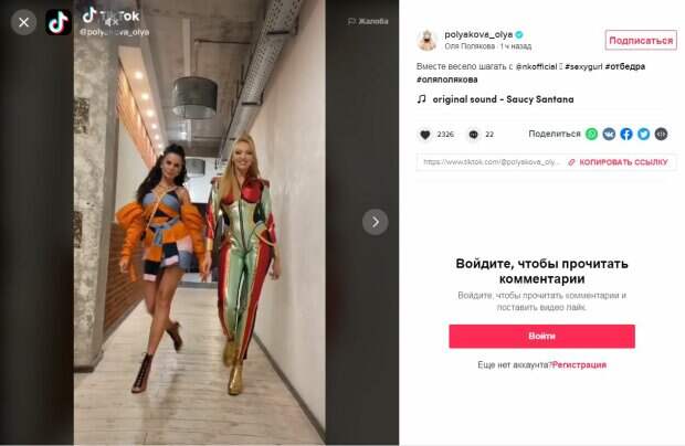 У обеих артисток были похожие прически. В таком виде звезды предстали на видео в "TiK ToK". (Чтобы посмотреть, доскролльте до конца страницы) Оля и Настя продефилировали по коридору так, что от них невозможно было оторвать взгляд. "Вместе весело шагать", - подписала видео "суперблондинка". За час пост собрал более 2000 лайков и немного комментариев. "и теперь только олды вспомнят их рэп батл", "твоя улыбка завораживает я даже смотрела только на неё