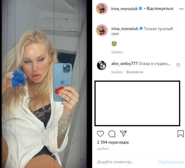 Экс-жена украинского футболиста Николая Морозюка, который играл за "Динамо", соблазнила поклонников дерзким образом Как передает Politeka.net, у себя в Инстаграм красотка опубликовала очень соблазнительное видео. Ирина известна провокационными поступками и очень откровенными фотосессиями. У девушки отличная фигурка, которая позволяет ей носить самые красивые наряды.