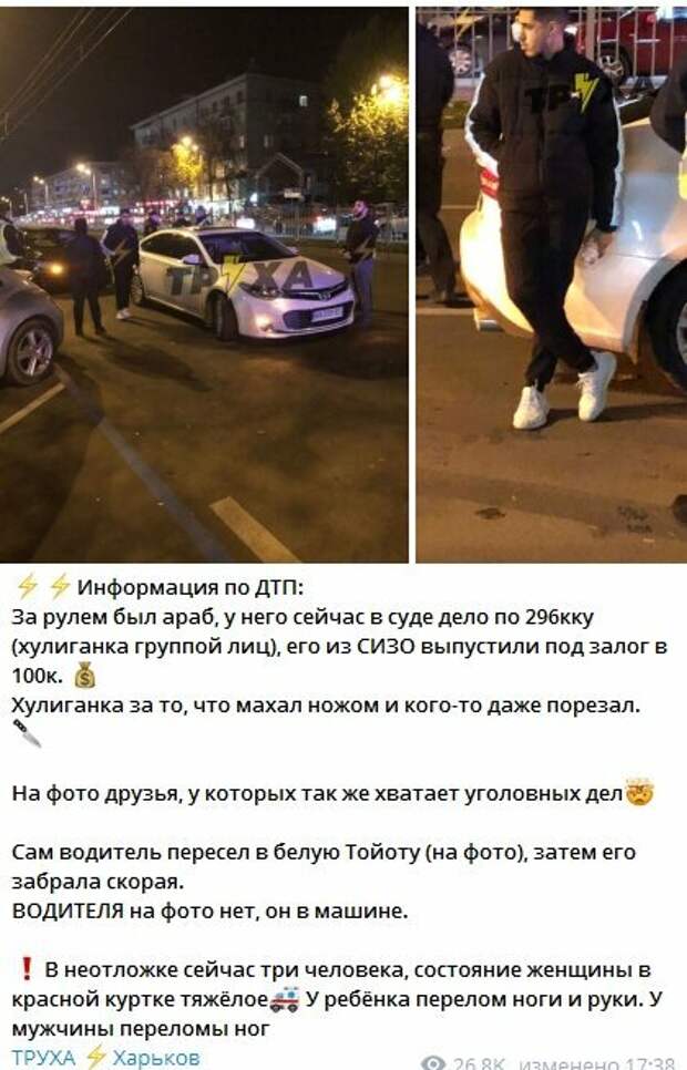 Согласно предварительной информации, у 50-летней женщины обнаружены переломы и черепно-мозговая травма. У 48-летнего мужчины ушибы, а мальчику сломало бедро и предплечье. Очевидцы утверждают, сбивший людей водитель устроил гонки с другом. Судя по опубликованным роликам, нарушитель ПДД – мужчина восточной внешности. Позже выяснилось, что за рулем автомобиля находился арам, в отношении которого уже есть открытое уголовное дело. До этого мы рассказывали, что три года назад Украину потрясло дорожно-транспортное происшествие в Харькове, унесшее шесть жизней. Вечером 18 октября 2017 года Lexus под управленим Алені Зайцевой выехал на красный сигнал светофора на перекресток, где врезался в Volkswagen Touareg, после чего ее машину выбросило на тротуар. В результате удара пять человек погибли на месте, шестая потерпевшая скончалась через неделю в больнице. Еще шесть человек получили травмы и вынуждены были пройти долгое лечение. Напомним, в Харькове судьи, которые вели дело Зайцевой, сняли мантии и исчезли. Как сообщала Politeka, Дронов решился на радикальный шаг ради свободы. Также Politeka писала, что суд пошел на поводу у Зайцевой, мажорка добилась своего.