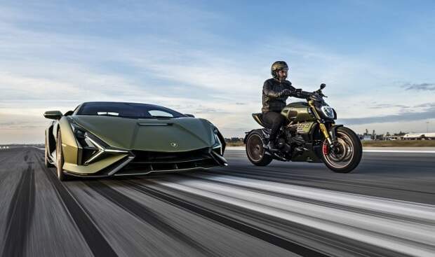 Первым плодом совместных усилий двух знаменитых итальянских брендов – автомобильного Lamborghini и мотогиганта Ducati стал гибридный суперкар с 800-сильным движком Siàn FKP 37, представленный в 2019 году.