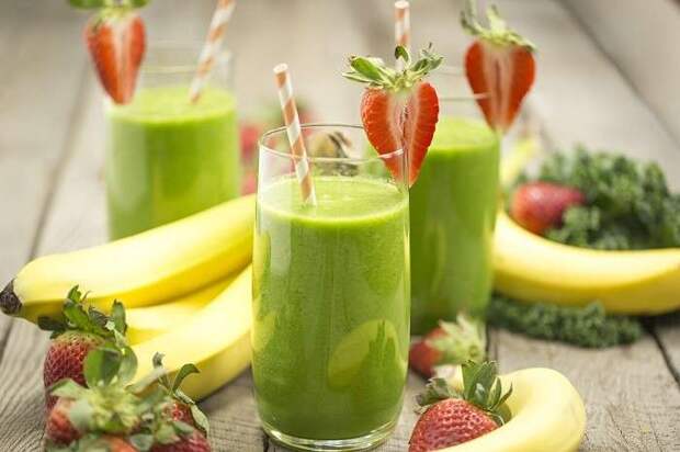 Зеленый коктейль для похудения Зеленые коктейли легко усваиваются пищеварительной системой. Когда они хорошо перемешаны в блендере, большинство клеток зелени и фруктов раздробляются, облегчая организму усвоение ценных питательных веществ. Коктейли можно пить до еды или вместо еды. яблоко – 3 шт.; банан – 2 шт.