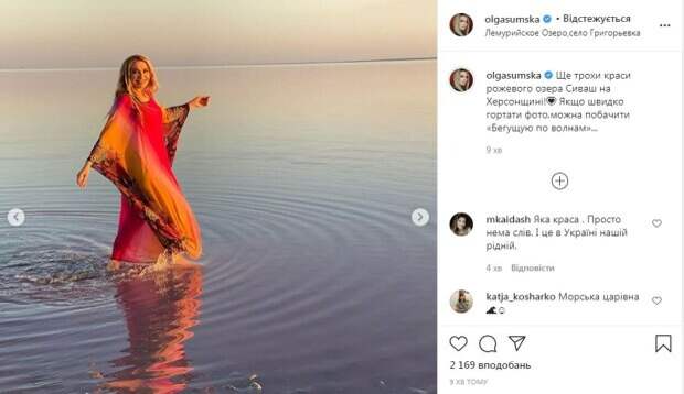 53-летняя украинская актриса Ольга Сумская, прославившаяся ролью Роксоланы, впечатлила кадрами с отдыха Об этом пишет Politeka.net, со ссылкой на страницу знаменитости в «Инстаграм». (Чтобы посмотреть - проскролльте вниз) На кадрах Ольга Сумская запечатлена в озере Сиваш Херсонской обрасти. Этот водоем известен тем, что его вода имеет розовый оттенок.