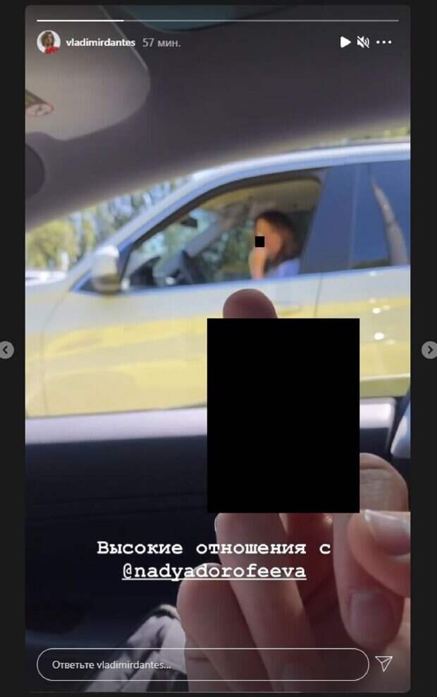 За время бракка Владимир вернулся на сцену после перерыва, а Надя начала сольную карьеру, попрощавшись с группой "Время и Стекло". Супруги активно ведут Инстаграм, где делятся с фанатами не только творчеством, но и личными кадрами. В этот раз Дантес решил показать, как развлекается с Дорофеевой. Владимир сидел в своей машине, а Надя в своей. В какой-то момент певец позвал супругу, показав ей средний палец. Дорофеева не растерялась и показала аналогичный жест, на что Дантес рассмеялся. "Высокие отношения с Надей Дорофеевой", - написал Владимир. Напомним, Дорофеева после годовщины с Дантесом засветилась в объятиях Макса Барских А еще Politeka писала, что Дантес с покрасневшими глазами выдал подробности самого загадочного шоу Украины Также Politeka сообщала, что секретные кадры с влюбленной Дорофеевой слили в Сеть, скрывали чувства от всех