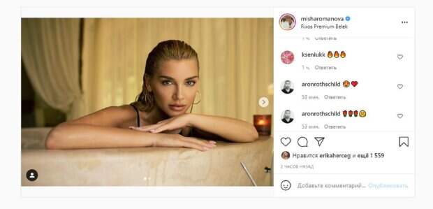 Сейчас девушка решила отправится на отдых в Турцию и делится в Инстаграм провокационными фото. На снимке, который Миша опубликовала в этот раз, девушка была в роскошной ванной. Девушка смотрела в камеру, не стесняясь показать эффектные формы. Фанаты поставили более тысячи лайков, включая Эрику Герцег, а также написали комплименты роскошной блондинке: "А можно матюкаться?", "Люблю", "Огонь", "Ты просто огонь", "Мишенька , ты очень красивая надеюсь у тебя будет мужчина который будет любить тебя". Сообщалось, что экс-солистка группы «ВИА Гра», украинская певица Миша Романова впечатлила видом в прозрачном комбинезоне. На свежих фото Миша появилась в просвещающемся черном комбинезоне, который, к тому же, был очень коротким. Романова не стала надевать под комбинезон нижнее белье, засветив свои аппетитные формы. Напомним, подруга Макса Барских Романова опасно наклонилась в леопардовом платье с декольте А еще Politeka писала, что экс-ВИА Гра Романова вместе с Максом Барских сообщила радостную новость Также Politeka сообщала, что подружка Макса Барских Романова в желтом бикини заставила ей завидовать