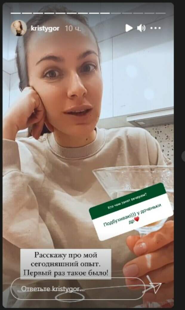 При этом она держала в руке бокал с, предположительно, мартини и утопленными в нем парочкой оливок. "Подбухнем вместе!", - обрадовалась Горняк, что можно, наконец, расслабиться, когда вдруг вспомнила о любопытном событии. "Расскажу про мой сегодняшний опыт. Первый раз такое было!", - подписаны кадры. "Я вернулась от остеопата... первый раз в жизни делала специфический массаж для лица. Мои подруги уже давно ходят к одной женщине-остеопату и очень довольны... Я решила тоже пойти..., - разоткровенничалась Горняк. - Короче, это было так больно! Так больно мне не было никогда еще! Не знаю, что она делала с шеей, лицом, головой, но говорят, что это очень круто... Мне кажется, что я помолодела... Это необычный массаж, это нажатие специальных точек. В следующий раз мы будем рассматривать мое тело, какие есть проблемы...". Ранее мы рассказывали, как жена Остапчука изумила уникальным фото - оказывается, еще до знакомства с Владимиром она была блондинкой. В кадре еще маленькая Кристина позировала с длинными белокурыми волосами, завязанными в два хвостика, рядом с огромной (по сравнению с ней) собакой. "Я и Джек", - указала на фото девушка. Напомним, что удовлетворенный Остапчук показал, как его балует новая возлюбленная: "Сегодня жена. ..". Как сообщала Politeka, жена Остапчука в платье с разрезами растаяла в объятиях мужа, показав настоящие чувства: «Мы в невесомости…». Также Politeka писала, что жена Остапчука заговорила о детях спустя три месяца после свадьбы: "В ближайшем году...".